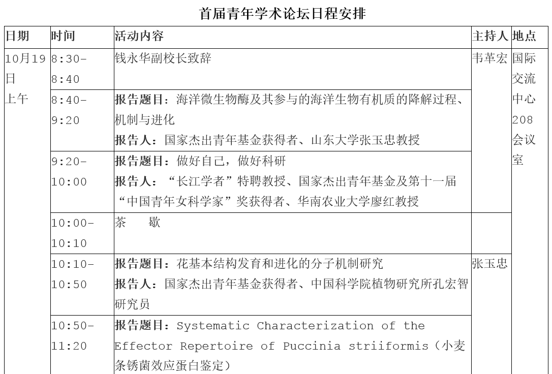 首届青年学术论坛日程安排