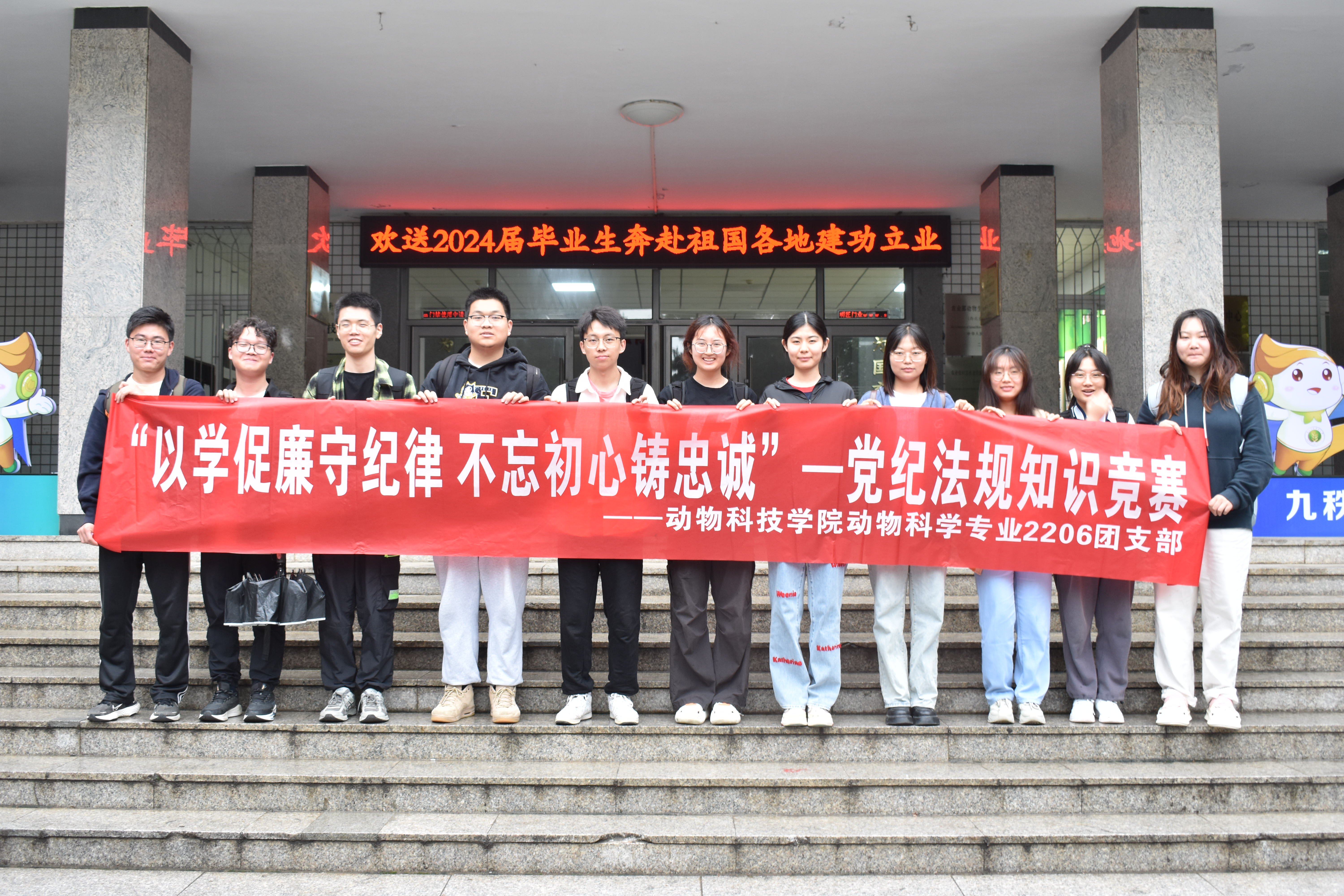 为深入贯彻落实党的纪律建设要求,提高同学们的纪律意识和规矩意识,推动纪律建设在同学们心中生根发芽,5月29日下午,动物科技学院学生会以赛促学,举办了“以学促廉守纪律,不忘初心铸忠诚——党纪法规知识竞赛”活动。此次竞赛不仅为同学们提供了一个展示自我、检验学习成果的平台,更是一次生动的党性教育活动,让同学们深刻感受到了党纪党规的重要性。