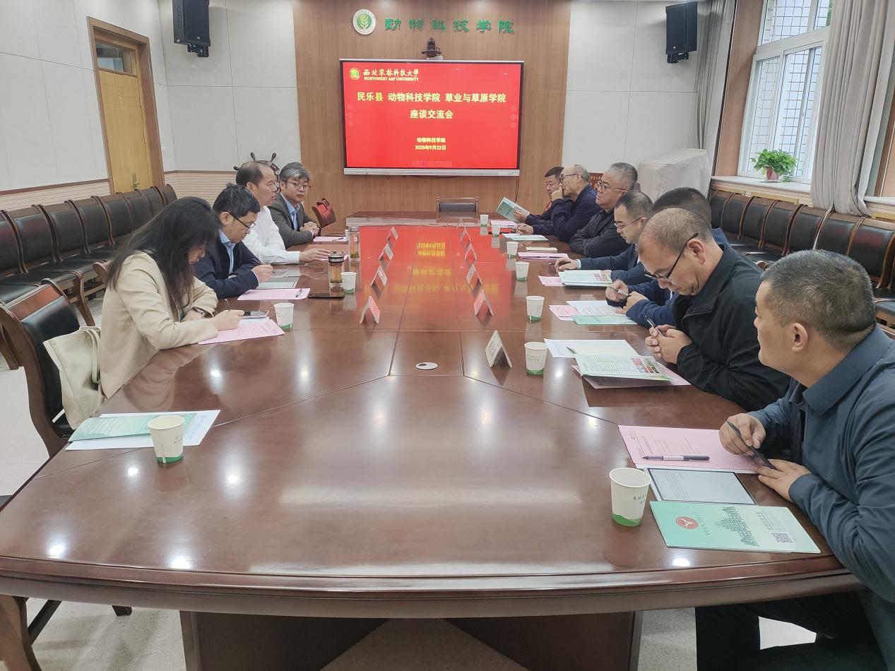 9 月 22 日,民乐县县委书记张鹏、县政府副县长陈永刚、甘肃华瑞农业股份有限公司董事长韩登仑、民乐工业园区管委会副主任何成旺、县委办公室主任马永军、县畜牧兽医工作站站长柴宏高一行6人来院调研校企地融合创新发展,学院副院长曹阳春教授、草业与草原学院副院长何树彬副教授参加会议,会议由党委书记曹军会主持。