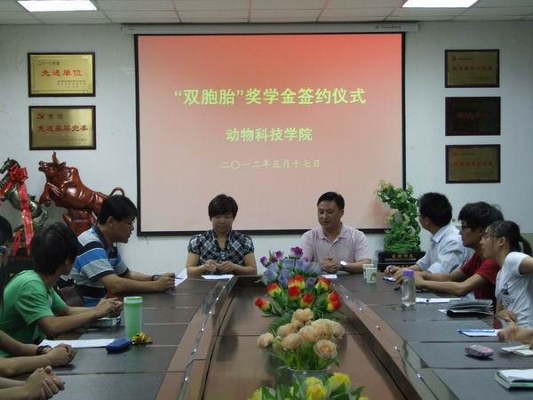 5月17日晚,我院隆重举行“双胞胎”奖学金签约仪式暨学生就业实习基地签约仪式,双胞胎(集团)股份有限公司咸阳分公司总经理刘全永、双胞胎(集团)人力资源中心经理张胜平、学院副书记兼副院长王晓娟、专兼职辅导员及部分学生代表参加了签约仪式。 王书记首先代表学院感谢双胞胎集团对学院学生的关心,相信通过本次奖学金及就业实习基地的设立,进一步加深了集团与学院之间的合作,使校企建立了长期的人力资源供需合作关系,实现学校、企业、学生“共赢”。刘总经理详细介绍了集团的发展历史及目前状况,重点强调了集团对人才的渴望,欢迎学院学子将来到集团工作成长。 双胞胎集团为学院学子设立1万元“双胞胎”奖学金,用于奖励学习成绩优秀,品德良好的学生。“双胞胎”奖学金的设立,标志着在我院单独设立的企业类奖助学金达到九项。截止日前,学院已与28家国内知名的大中型企业签订就业实习基地。 双胞胎(集团)股份有限公司地处江西省南昌市高新技术产业开发区,是一家专业生产饲料的全国性大型企业集团。集团现有66个生产基地,已经投产的49个制造型企业分布在江西、广东等17个省(区、市),另有17个正在建设过程中。集团现年产能800万吨,生猪养殖规模20万头。猪料销售高居全国第一,双胞胎集团分别成为农业产业化国家重点龙头企业、中国制造业500强;双胞胎猪饲料荣获国务院颁发的国家科技进步二等奖和象征中国农业奥斯卡金奖的中国饲料重大科技进步奖。