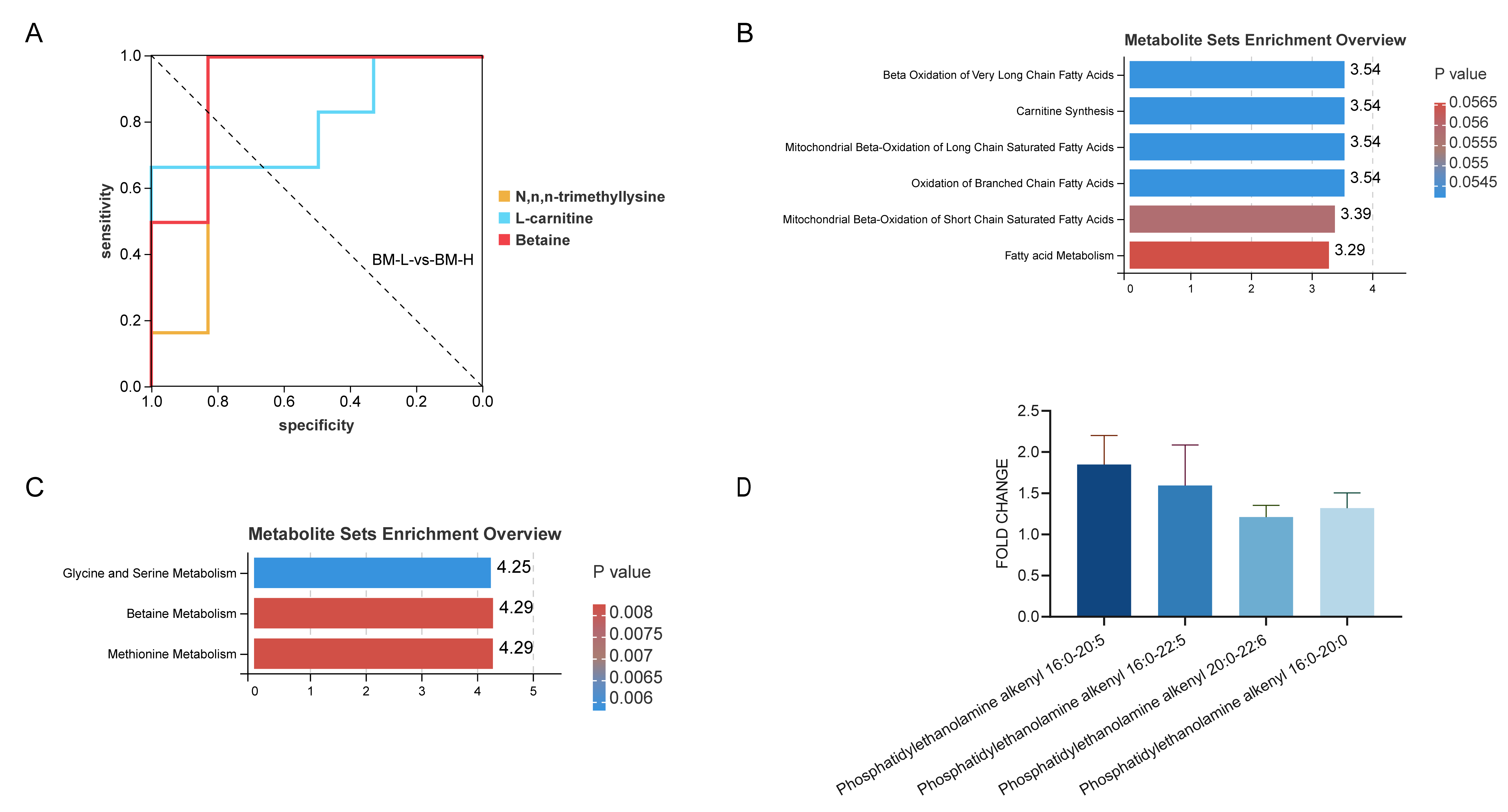 研究团队通过非靶向代谢组学分析发现,瘤胃液中的 α-亚麻酸是影响肌内脂肪积累的关键代谢物。进一步筛选出 Cnuella、Gaetbulibacter、Moheibacter 和 Lacibacter 四个核心菌属,它们与 α-亚麻酸呈显著正相关,在塑造利于脂肪沉积的代谢环境中发挥核心作用。 KEGG pathway 分析显示,高肌内脂肪组中脂肪酸 β-氧化通路被显著抑制,减少了脂肪酸分解,为脂肪积累创造了条件。在背最长肌组织代谢组学检测发现高肌内脂肪组的 N,N,N - 三甲基赖氨酸、L-肉碱和甜菜碱含量显著降低,这些代谢物与上述四个菌属呈负相关,且通过与 ACSS1、ACSF2 和 MPO 等蛋白质相互作用调控脂肪形成;而α-亚麻酸的下游代谢产物(如磷脂酰乙醇胺烯基 16:0-20:0、16:0-20:5、16:0-22:5、20:0-22:6)在高肌内脂肪组背最长肌中富集(图2)。