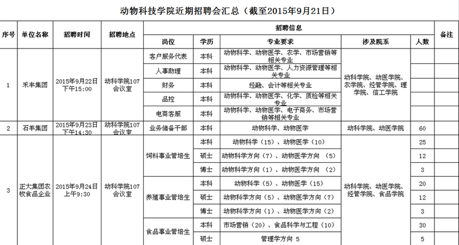 动科学院近期招聘会汇总(截至2015年9月21日)