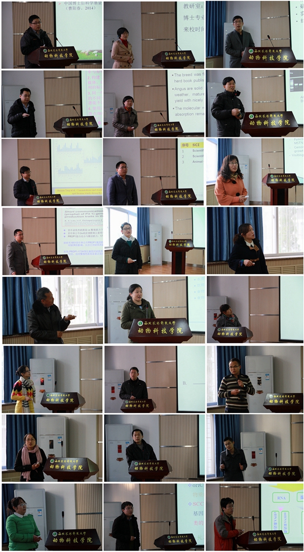 为加强广大师生学术交流,活跃学院学术氛围,12月16日,动物科技学院2014年度学术研讨会在107会议室顺利召开。西安交通大学马建岗教授,陕西师范大学李建科教授、张富新教授,我校生命学院陶士珩教授、动物医学院郭泽坤教授受邀担任研讨会评委。院领导姚军虎、赵延安、昝林森、呼天明、孙超及全院教师和部分研究生、本科生共100余人参加了研讨会。