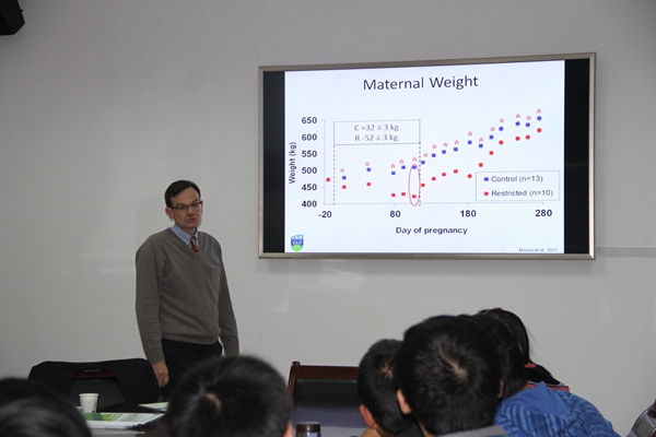 3日下午,Alexander Evans教授应邀为动科学院师生分别做了题为“Agriculture and Animal Production in Ireland”和“Variation in Ovarian Follicle Numbers in Cattle: Causes and Consequences”的精彩报告。Alexander Evans教授详细介绍了爱尔兰的气候、地理、人文、农业和畜牧业等各个方面的基本情况。之后, Alexander Evans教授介绍了他在动物遗传育种方面的部分研究进展。最后,Damien Dempsey详细介绍了爱尔兰都柏林大学及农业与食品科学学院的基本情况。报告结束后,我院师生与Alexander Evans教授一行展开了充分深入的交流。