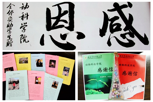 学院认真做好受助学生助后教育,增强学生爱国爱校之情,培养学生的感恩意识和社会责任感,通过开展志愿服务、支农支教、文艺下乡、走进社区等系列活动,让受助学生在活动中增长才干,实现从接受资助到自助再到帮助他人的转变。举办“我的一封信”活动,同学们向企业寄送感谢信和手工作品,汇报自己在校的学习生活情况,表达自己的感恩之心。水产121班陈蕾同学表示,感谢企业对我的资助和关心,感谢学院和老师对我的谆谆教导,我将用优异的成绩感恩企业、回报师恩、奉献社会。