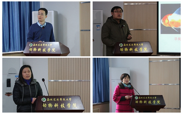 12月30日,我院2015年学术研讨会在107会议室隆重举行。为了提高研讨交流的质量和水平,体现公平、公开的原则,本次学术研讨会,学院特邀西安交通大学马建岗教授、刘恩岐教授、陕西省动物研究所陈志杰研究员、西北大学高云芳教授、陕西师范大学吴民耀教授等5位校外专家担任评委,对26位获得2015年基本科研业务费的青年教师进行了集中检阅。科研院常务副院长韦革宏教授,学院全体领导班子,以及教师和学生代表100余人参加了本次学术研讨会。会议由副院长昝林森教授主持。