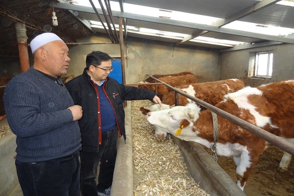 在宁夏海原县肉牛养殖户调研指导