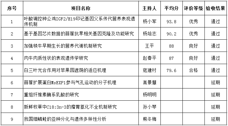 验收专家组认真审阅了2013年立项项目组提交的结题验收报告材料,在听取项目负责人汇报的基础上,对各项目组计划任务完成情况、研究成果的创新性、人才培养等进行了质疑、讨论和评价。最后专家组按照项目研究内容、任务目标完成、成果创新性、培育其他项目和经费使用情况等5个评价指标打分,形成总体验收意见,此次汇报的2013年立项项目5个通过结题验收,4个项目延期验收,每个项目验收评分结果及验收结论见附表1。验收专家组成员严格审查了2014年立项项目进展情况,对每个项目负责人开展了针对性指导,提出了具体要求,并按照验收标准进行了考核排序,评价结果见附表2。
