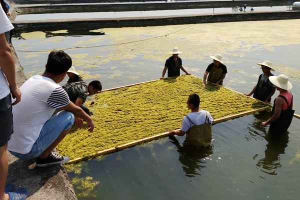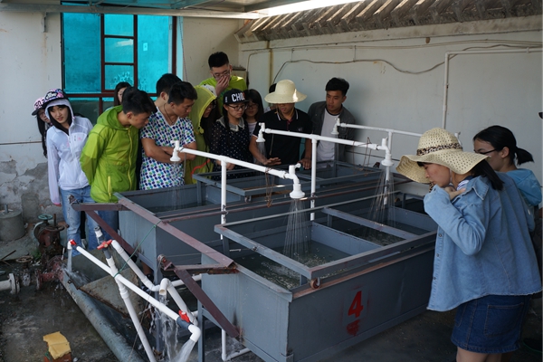 会后,在试验站工作人员的带领下,同学们参观了匙吻鲟苗种培育车间、自动孵化器、成鱼饲养池、室外孵化池、饲料车间及实验室远程病害诊断系统等设备。目前,实习生已投入紧张充实的实习生活中。