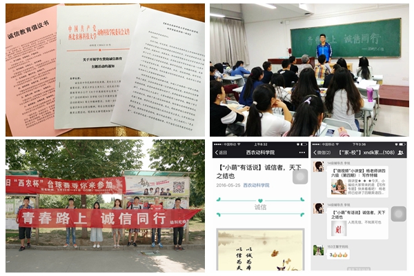 同学们或通过激情澎湃的主题演讲、或通过文采绽放的征文比赛、或通过唇枪舌剑的辩论赛,以丰富多彩的活动形式,用独特的声音阐述诚信的内涵,表达内心的坚定。学院借助微信公众平台推出“小萌有话说|诚信者,天下之结也”,并通过QQ群等新媒体向广大学子推送《致西北农林科技大学动物科技学院助学贷款学生的一封信》,呼吁广大贷款学生恪守信用、及时还贷,展示大学生良好的品质,用实际行动创造良好的信用记录,做一名有诚信、有担当的有志青年。同时,学院组织全体助学贷款学生观看影片《贷款助学、信用助人》,同学们纷纷撰写观后感受,表达自己的心声。草业131班祁彦文同学表示:自己来自农村,家里兄弟姐妹多,收入入不敷出,如果没有生源地贷款政策资助,根本不可能坚持学习到现在。毕业后,我想先就业再创业,诚信工作、及时还贷,用自己的实际行动感谢母校、银行和国家的帮助。