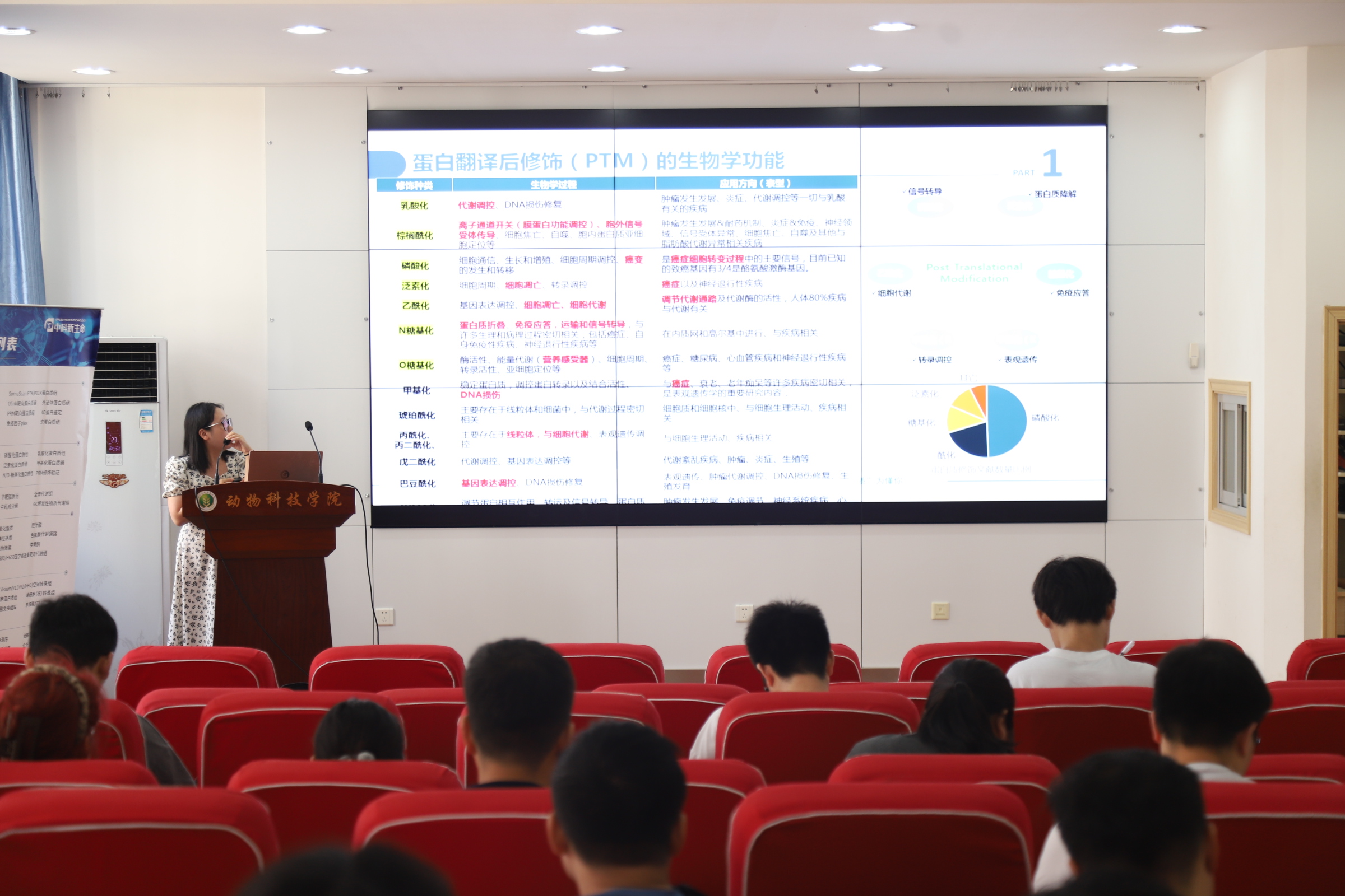 会上,葛晓林专家表观遗传学视角切入,系统阐述乳酸化也就是赖氨酸上的蛋白翻译后修饰(PTMs)和动物科学的关系以及在动物生长发育、代谢调控及细胞免疫中的分子机制。她结合最新研究热点,揭示乳酸化修饰在反刍动物瘤胃微生物代谢、畜禽肠道健康等领域的潜在应用价值,并重点介绍自主研发的高通量乳酸化修饰组学分析平台。该平台通过质谱多组学技术联用,实现修饰位点定位与动态监测,为动物科学精准调控提供全新工具。